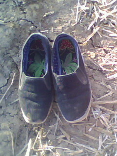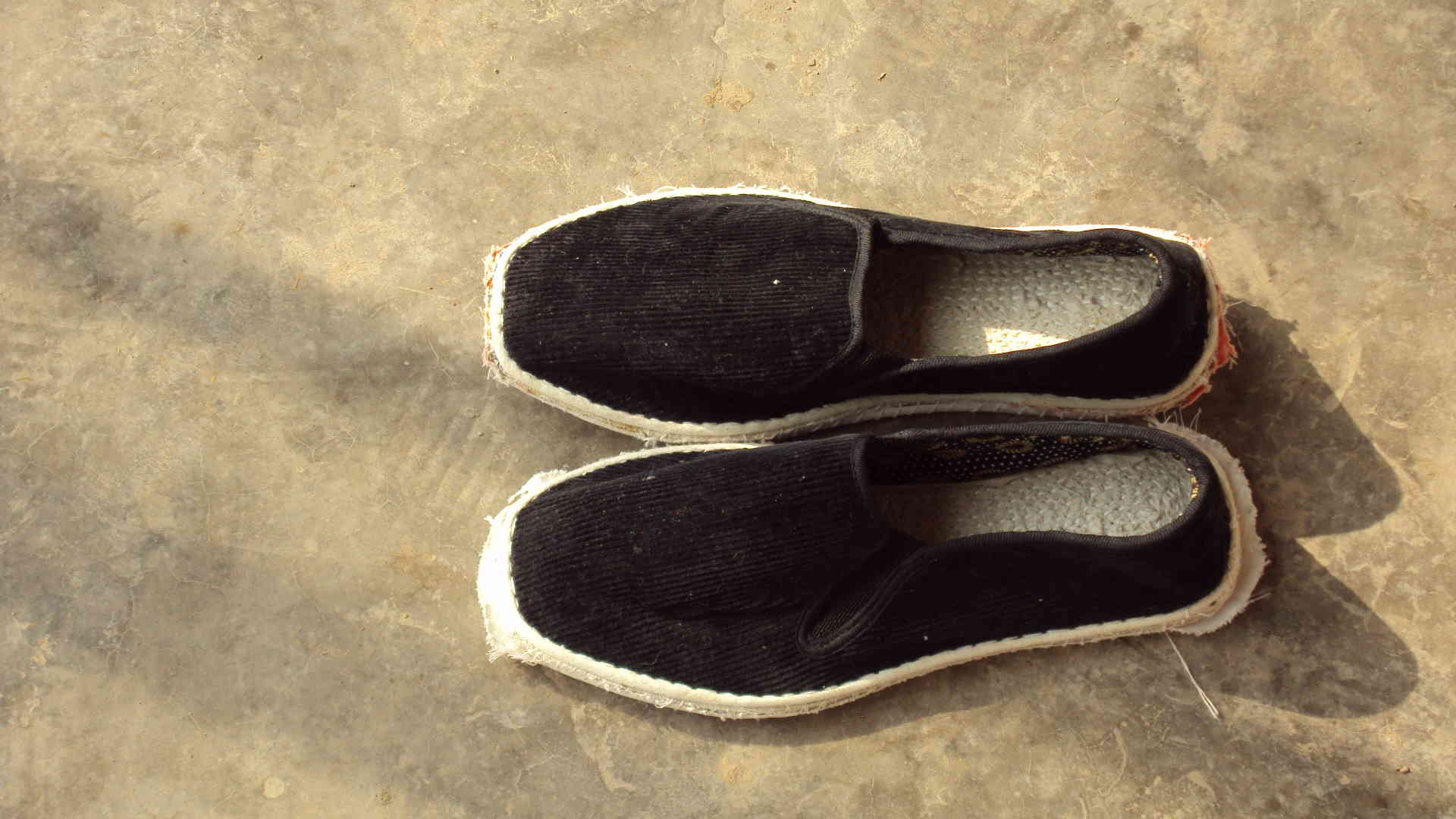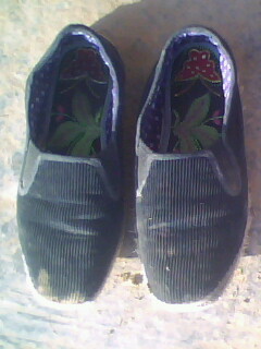 先说做鞋的材料,顾名思义,当然是布。做鞋底的布是破旧的衣服、裤子等。首先将破旧的衣服、裤子按缝拆开,抹平。其次把少量面粉放入约500ml水中,烧开至变成很稠的面糊,分别抹在每块布上,再将布一层一层粘成4毫米左右厚。再次放在太阳下晒干;然后,再把这些布按鞋底样剪好(大约4片),并粘起来,放在炕毡下压一周左右。最后一环就是纳鞋底了(为了使鞋更加牢固,需用线将它固定住。)。那厚厚的鞋底,硬梆梆的,很难穿透。我不知道这当中母亲的手被戳穿了几针,但妈妈还是做出来了。