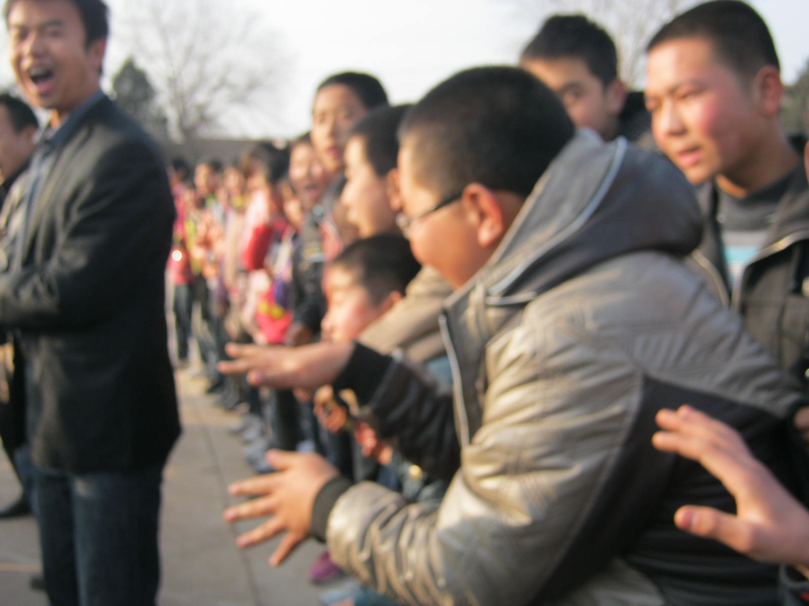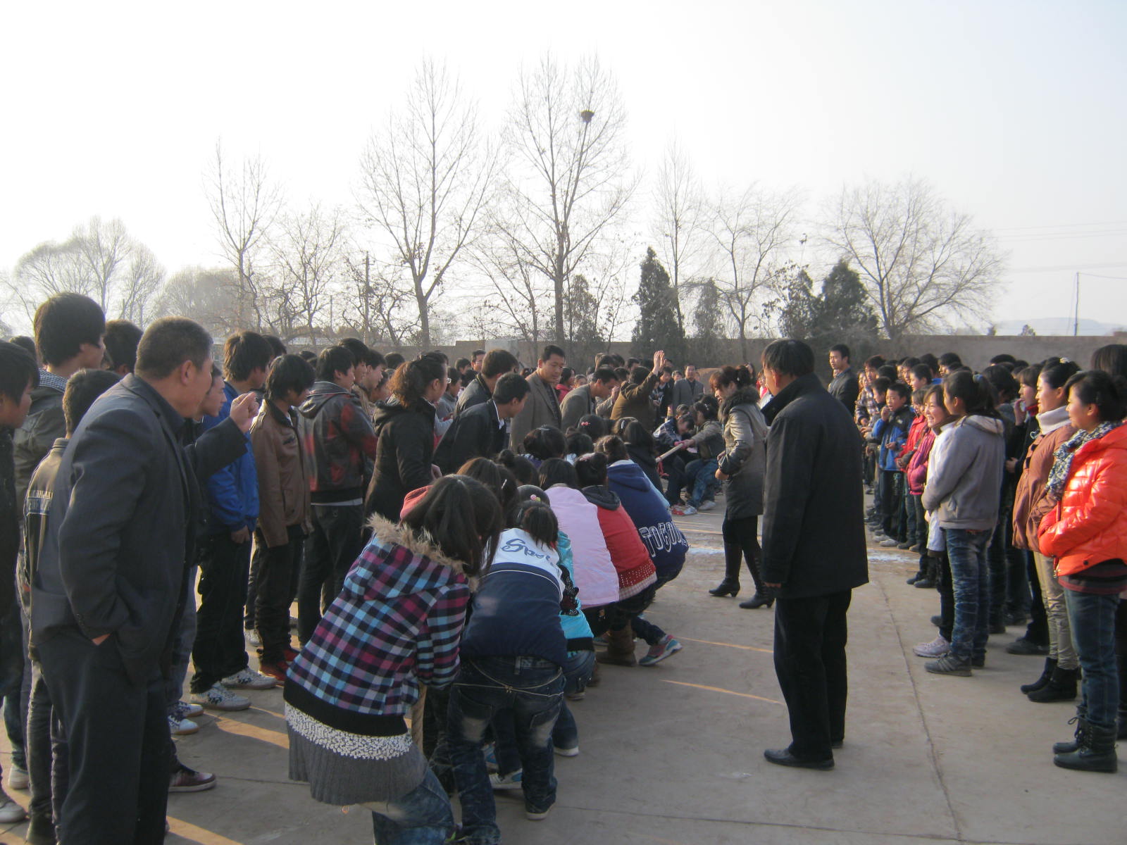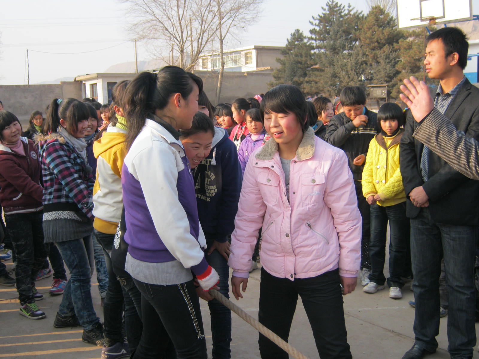 我们班的男同胞们还算很争气,上去就赢了二班的,我们大家都高兴的跳起来了。