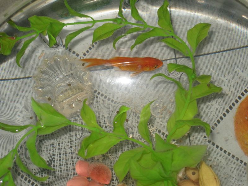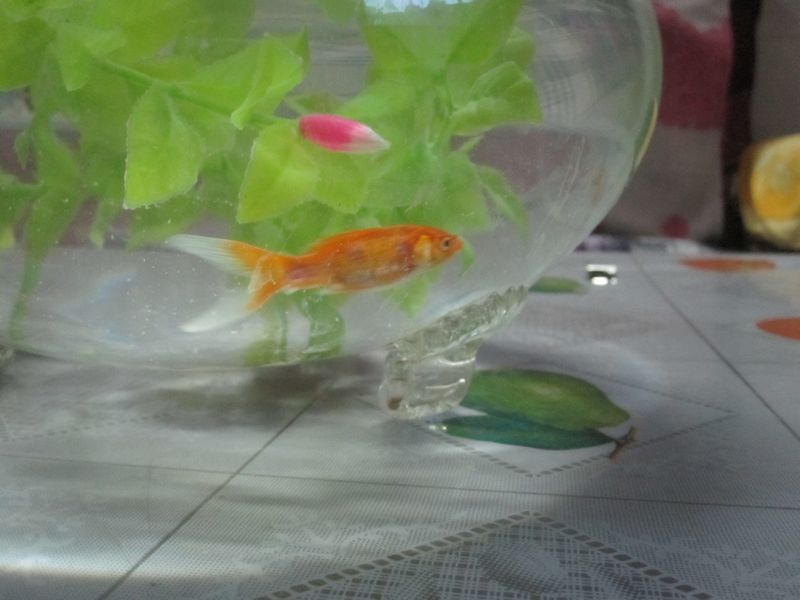 幸运的是,我还有那条红色的小金鱼,幸亏它没死。那条小金鱼长约2寸,全身都是红色,整个身体像一个大玉簪。红色的身体上镶了一对小小的乌黑的眼睛,再加上那条剪刀似的尾巴,既能让它在水里来去自由,又显得它更加漂亮了。小金鱼经常藏在水草下面不出来,生怕人会伤害它,虽然鱼缸里只有它一条鱼,但它还是那样活蹦乱跳,那样富有生命力。
