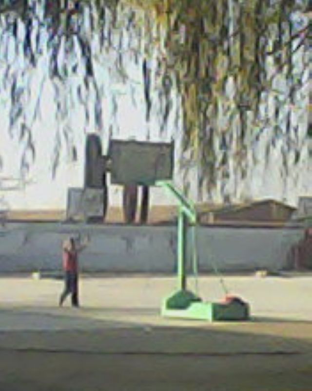 操场上有几个篮球架,每到星期二的时候同学们就高高兴兴的在操场上做自己想做的事其中男生有些和老师在一起打篮球和打乒乓球。女生有些在柳树下说悄悄话。一片欢声笑语热闹非凡的样子。