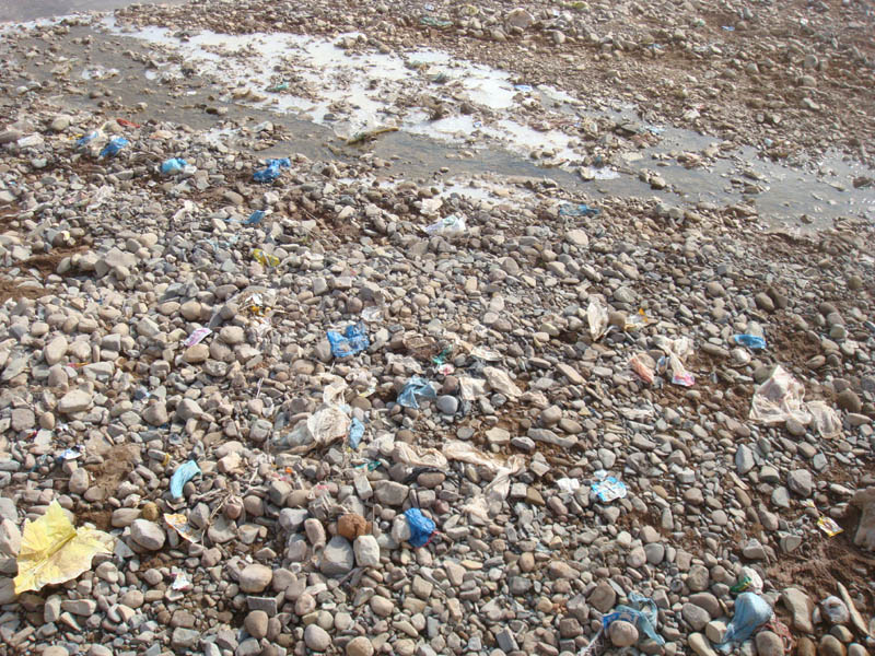 然而走在河提上向左右一看,河的左面风景诱人,右边污水不停的向河道倾斜,白色垃圾一片又一片,人走在上面有时难以适应,你看这些人随手扔垃圾可是没人清扫,像这样的人在泾河源镇很多很多。尤其是在夏季一场大雨过后留下了垃圾更多让人看了很不舒服 。