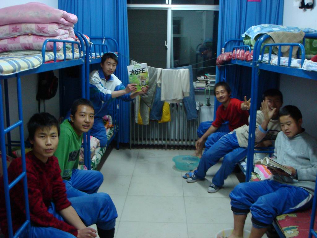 我在中宁一中住宿,这儿的环境非常优美。这是我的宿舍,在公寓楼的502号房间,住着我们班的8位同学,他们都十分热情而且富有凝聚力。看!他们多可爱。在这儿住宿简直是一种享受,每个人不会因住宿想家而抱怨,而是因住宿更加快乐 。