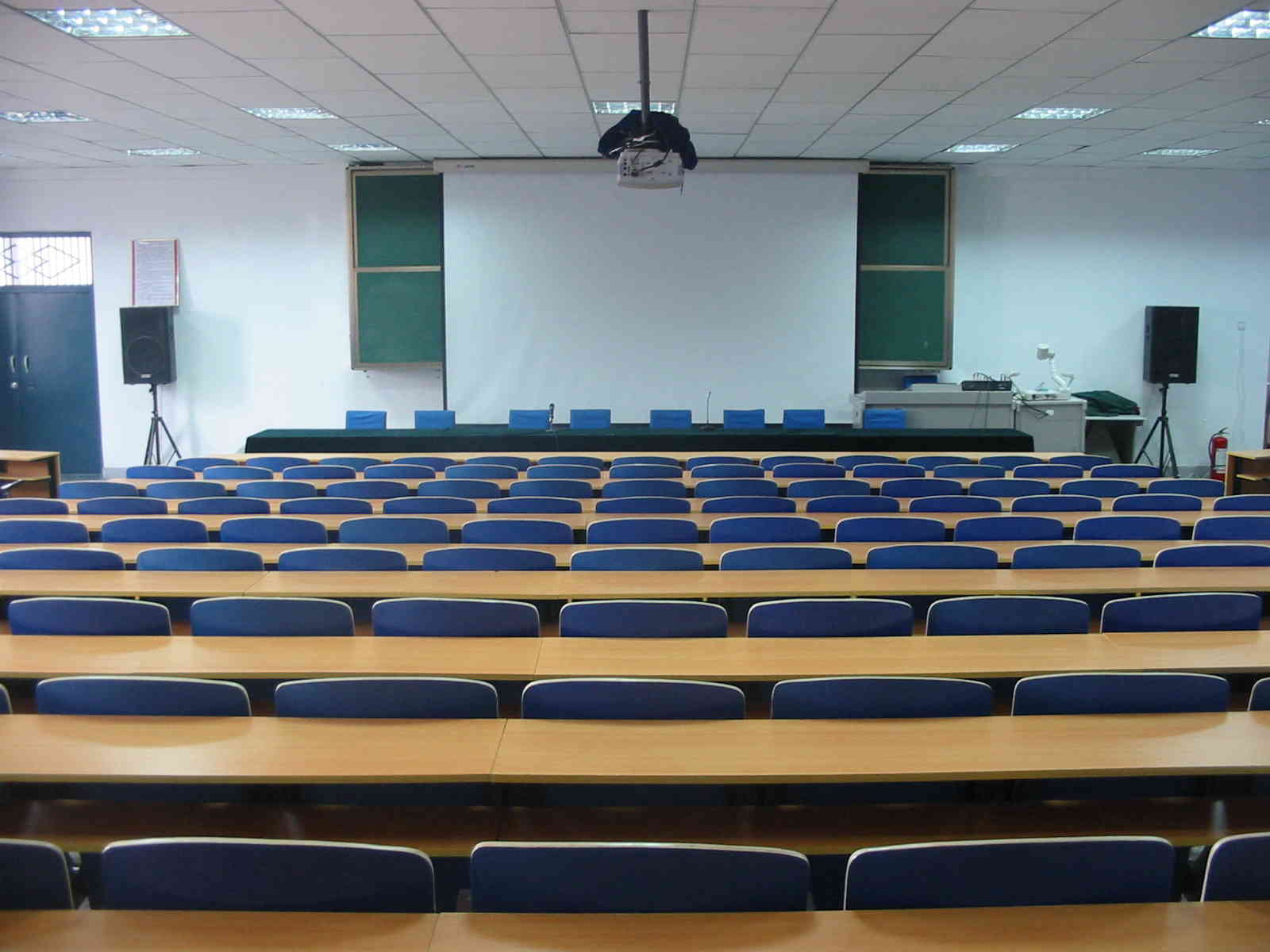 阶梯教室是一个公共教室每当有公开课和老师开会时,都会到阶梯教室,教室宽敞明亮,阶梯式桌椅崭新而且有特色。