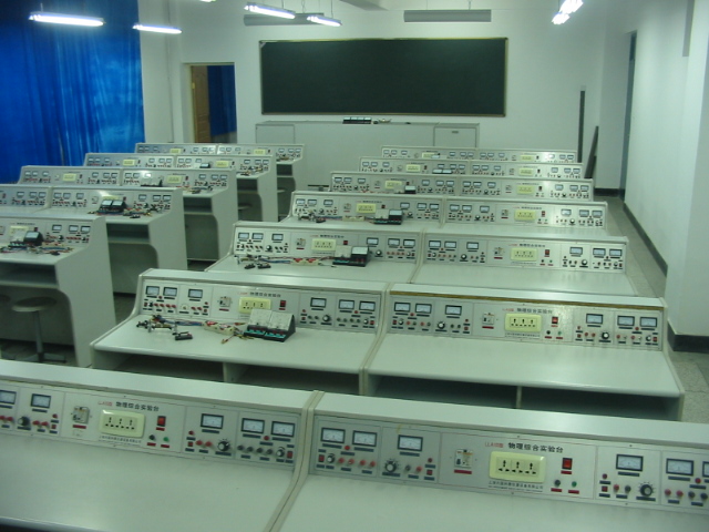 物理实验室的每张桌子上安装了电流表 电压表,将电源直接供应到每个实验台上,安全又方便。