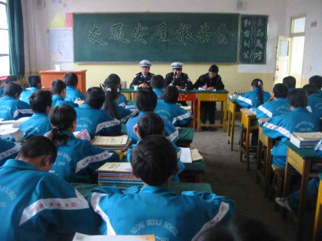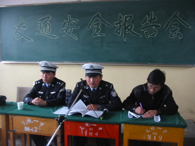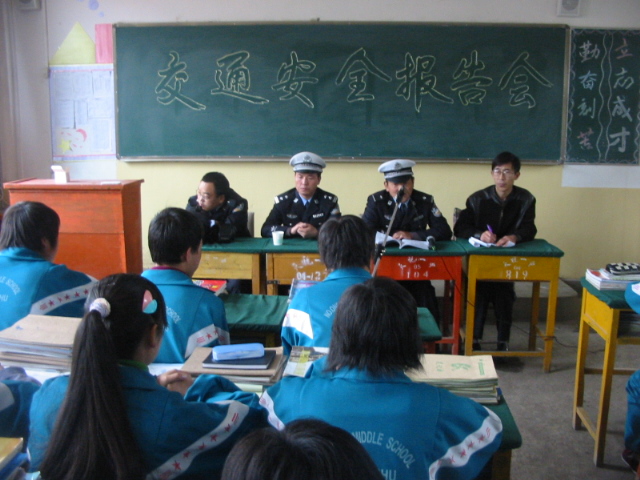 交通安全一直是学校重视的一个方面。今天学校领导特地请来了县交警大队的警官们,为我们传授交通方面的知识。