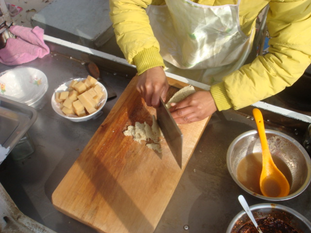 面皮子是家乡的特色小吃之一。它的做法比较简单:首先准备一盆水,和好一团面并放入水中捏吗,挤,按,淘,直到水清为止,取出剩余部分,这就是面皮子的特色——面筋。