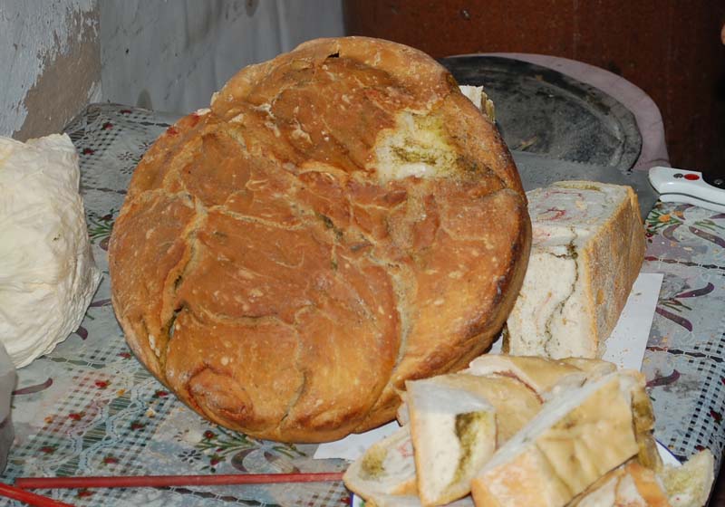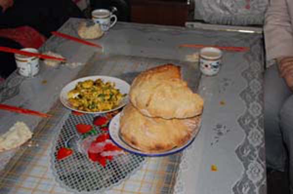 这时锅里的油可能少了,可以再往锅里加点油,因为浇油的过程很像小狗撒尿,所以,这种饼就叫"狗浇尿",浇油时要一边浇一边转饼,以防饼粘锅,等到两面都变成金黄色,就可以出锅了。如果再用砖茶沏壶茶,用茶就着"狗浇尿"吃,那味道简直赛过山珍海味。