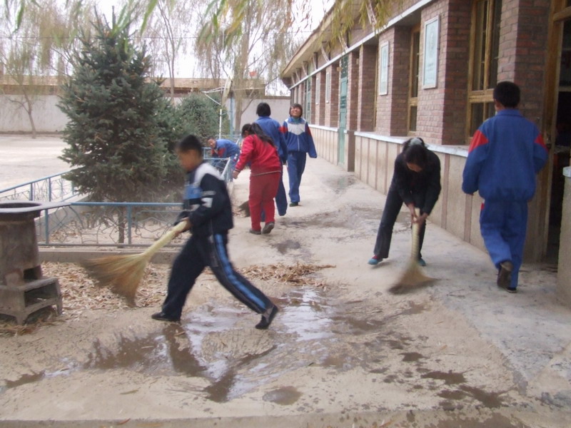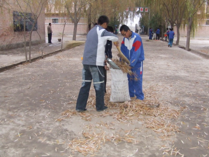 每逢星期天下午,同学们返校,第一件大事就是打扫学校各个角落的树叶。若是碰上那天刮风,可就惨了,刚刚扫完的马路上面就又是一层厚厚的柳叶,于是,同学们只好再扫,真是辛苦啊。