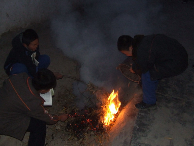 落叶实在太多,又没有好的处理办法,用水桶和袋子也清理不完,只好用火去烧。这样做虽然不环保,可也没有办法。火光映红了我们的脸庞,看着落叶随火苗起舞,才松了一口气。当然,烧的时候也不能掉以轻心,要专门派同学看管,防止火灾事故发生。