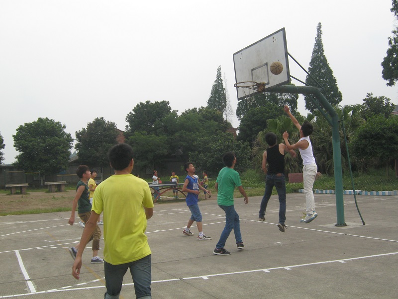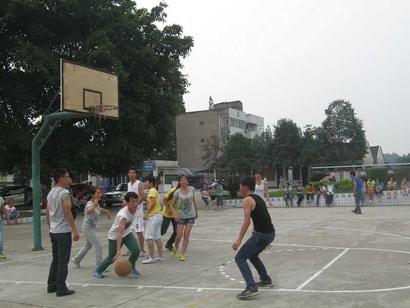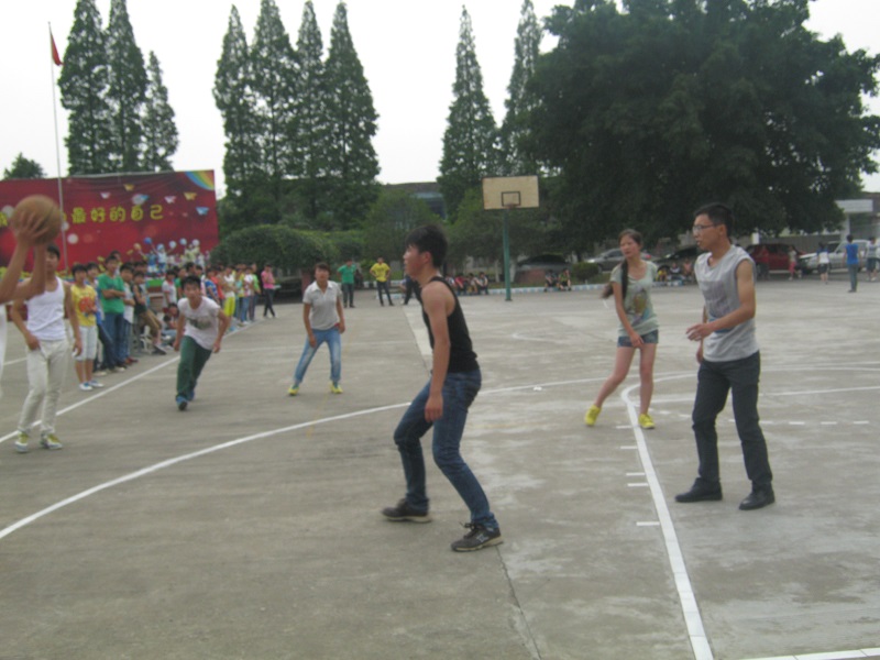 稍作休息,下半场又开始了。我们的队员发起了猛攻,在啦啦队有节奏的助威声中,我们队的分数很快就赶上来了。 下课了,小学的弟弟妹妹也来操场观战,我们两边的啦啦队赶紧开始拉赞助,被拉过来的小朋友也和我们一起呐喊助威。 "加油!" "雄起!" 两边的声音不相上下,两队的分数也交替领先。