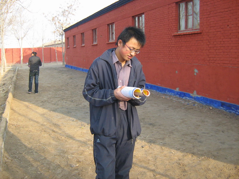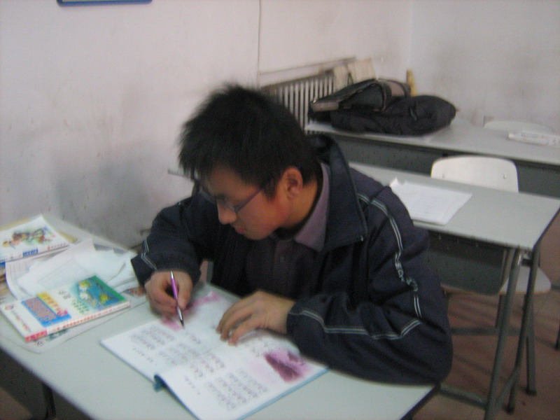 我的同座位是一个留级生,他是从上一届初三留下来的。他留着同别的同学一样的发型,戴着一幅眼镜,显得很有学问。他每天都早早起来背书,作功课,总是不让时间从他身边流走。看,这就是他早读的样子,显得多么认真啊!