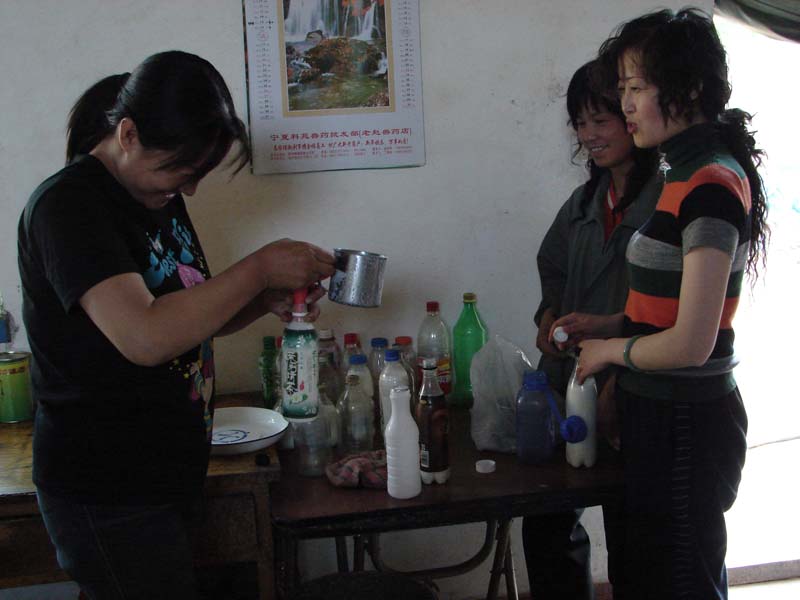 自小我就喜欢牛,觉得牛是勤劳与善良的化身。近几年镇上兴起了奶牛产业,惊讶于奶牛的经济效应,在辅导老师的鼓动下,我便带上相机,亲自寻了个奶牛场实地考察一番。没成想我的脚慢了一步,没能赶上打鲜奶人流的高峰时刻!不过看到这个养奶牛的阿姨合不上嘴的笑脸,还有桌子上摆满了待装牛奶的瓶子,可以看得出这里的生意很好。阿姨告诉我,现在的人生活水平都提高了,都不喜欢喝厂家生产的袋装牛奶,所以到这里现打新鲜牛奶的人特别多,每天都有一百多人。用喝过饮料的瓶子装上一瓶就差不多是一斤,刚好一元,这两个打奶的女士是附近铁路的职工,她们是这里的老顾客了。