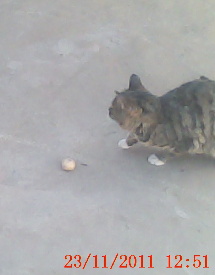 我每次和它玩的时候,我都会扔过去一个球,然后它就跑过去抓住那个球左弄右抓的,可逗了。