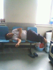 北京是一个繁华的地方,因此什么都特贵,住宿一晚上至少也要七八十,我们哪里住得起呀。怎么办呢?我们只有睡在医院的楼道里了。医院中有保安,晚上十点以后才可以睡觉,早上五点钟就必须起床,白天根本就没有地方休息。也许是睡眠不足,我和爸爸常常会犯晕。
