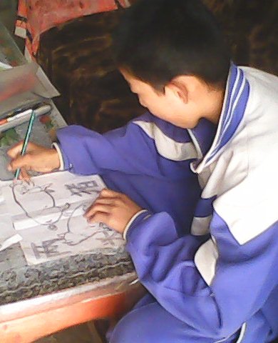 弟弟喜欢画画。他画起画来可以说是废寝忘食,一笔一画,一丝不苟,只不过排场有点大,他一画画桌子就遭殃了,他把画纸扔得满桌子都是。虽然他只能是模仿别人画,但是他确实有画画的天赋。