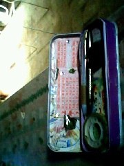 我有一个文具盒,虽然它体积不大,但是有两层。它是紫色的,我很喜欢它。