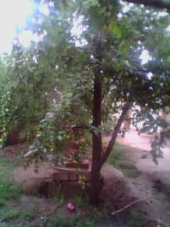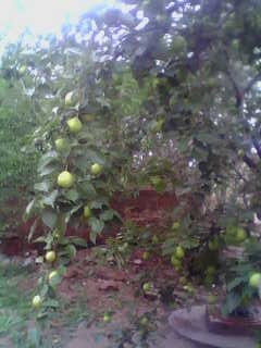 瞧,我家的果树上果子已经缀满了整棵树,果树枝也被压弯了腰,有些甚至被折断了。