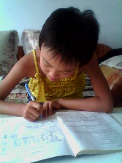 表妹她学习很认真,学习时不希望别人来打搅她,我很欣赏她的学习态度,但愿她能保持这种作风,学习肯定会更上层层楼。