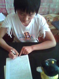 每当放学回家的时候,我就会用手轻轻地抚摸它,然后把它放在我旁边陪我写字。