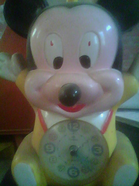 每个人都有自己心爱的闹钟,我也不例外,我的小闹钟它长着圆圆的耳朵,尖尖的鼻子,两只小手举起来,脸上带着微笑,当客人进来,它都好像在说:"欢迎,欢迎。"