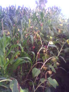 向前走去,已经看到向日葵的花儿已经凋谢了,向日葵都已经低下了头,像害羞的小姑娘似的,可是玉米姐姐已经从玉米杆中露出了脑袋,好像急着要看外面的世界,吮吸大自然的新鲜空气,探索大自然的奥妙。