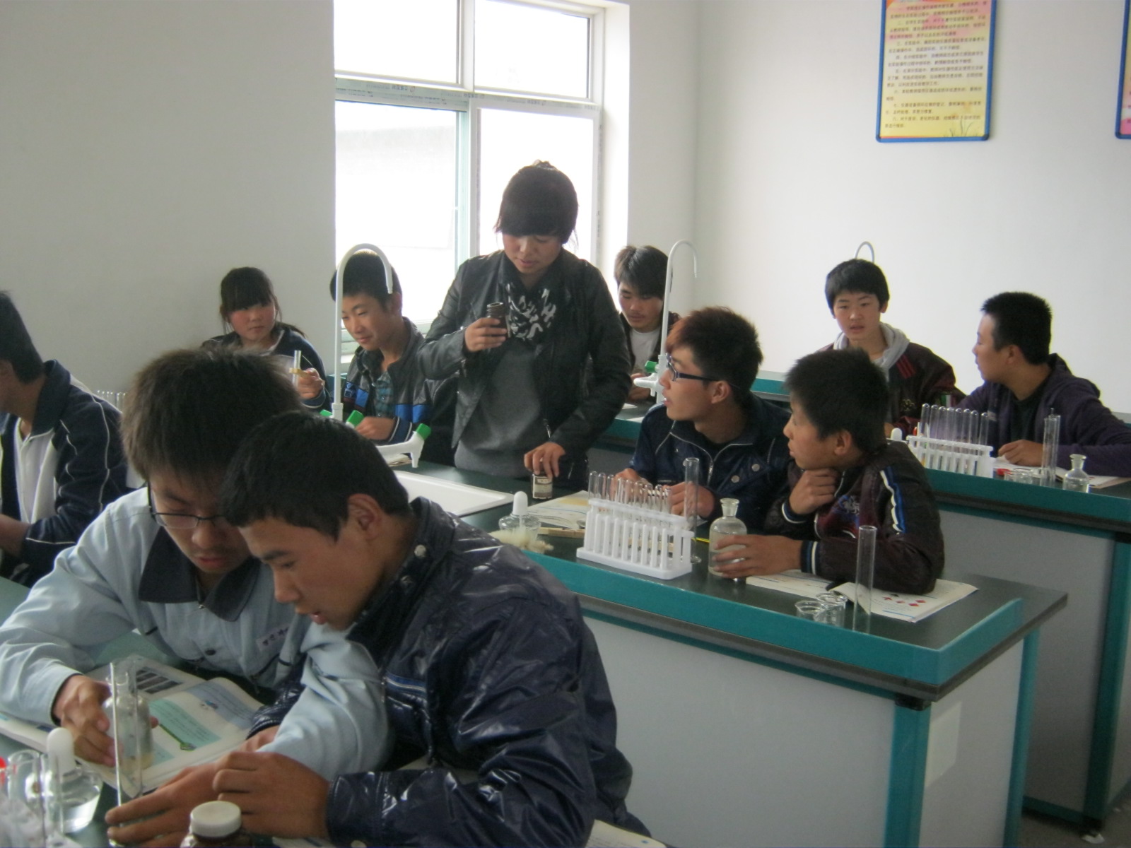 以前我们看到课本上的实验的时候,我们只有看的份,因为学校没有实验室,所以我们不能做实验,只能看老师做演示实验,今天,老师先让我们在教室里面熟悉了一下课本上的实验步骤,然后我们就去实验室了。