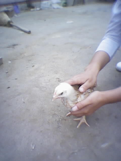 这群小家伙既调皮又可爱,有时就在笼子里搞演习,打打架;有时又在躲猫猫;有时哪,又对空中飞的那群"嗡嗡"叫个不停的苍蝇发起攻击,并一举歼灭,吞之肚中。但是,有时候它们又特别的安分,这时我便捧起一只小鸡,轻轻地抚摸着,感受着它的心跳和呼吸,感受着生命的珍贵与活力。