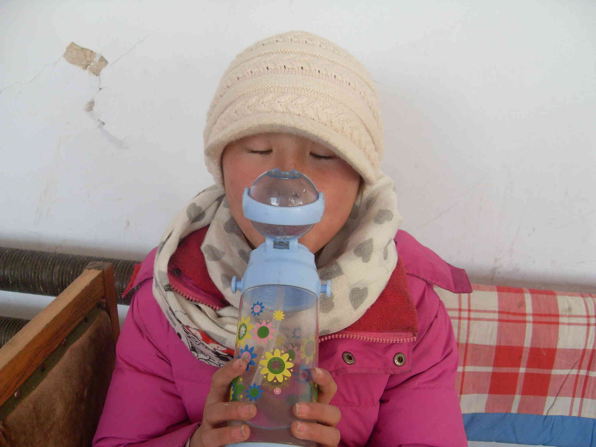 我的水壶有一根挺长的管,它可以分成两段。水多的时候,把两端抽出来,还有一个小头,就可以吸上水。水是半瓶的时候,就抽出一端,这样就可以喝水了。水快没有的时候,什么都不用,直接喝就可以了。