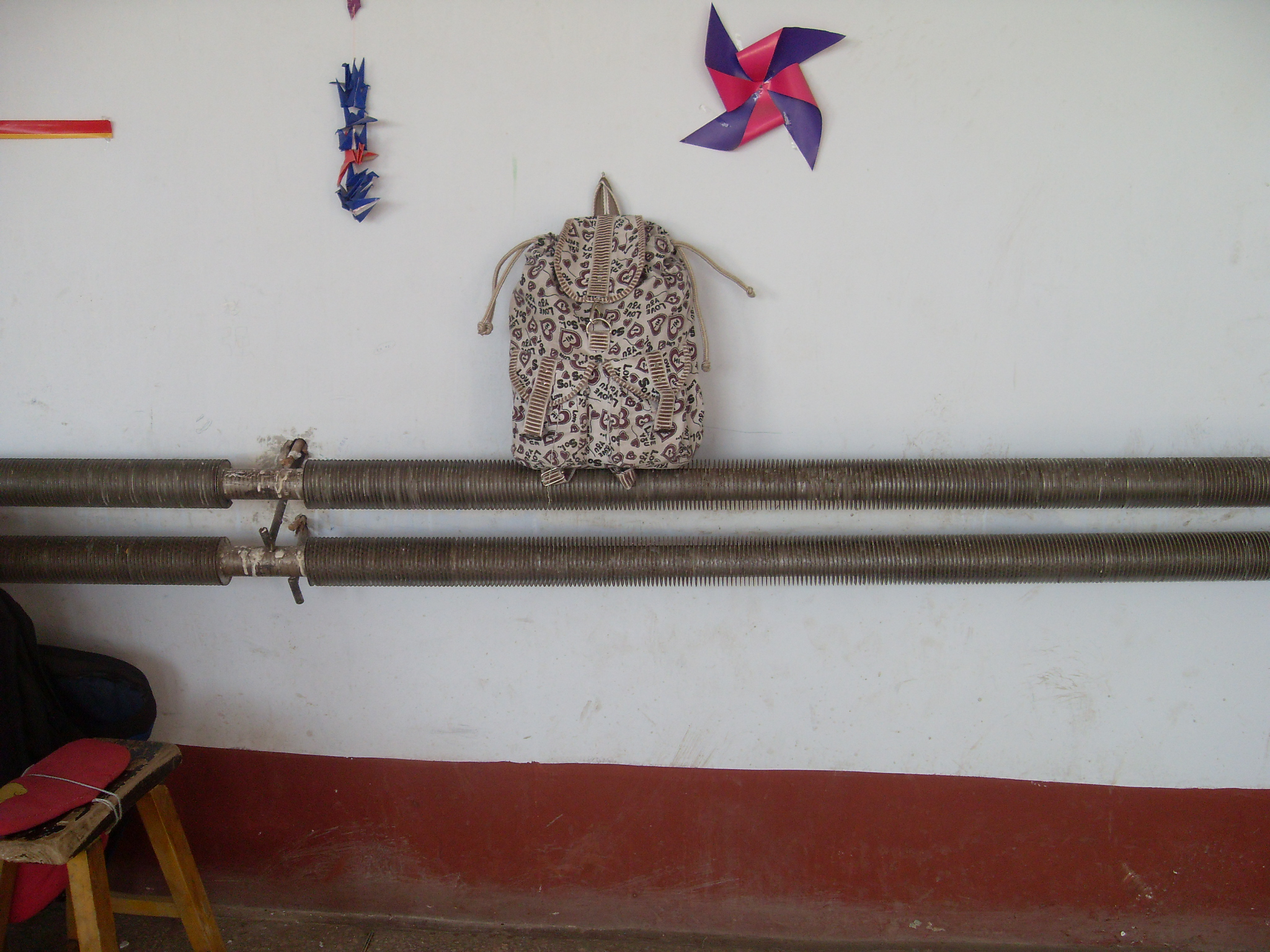 我以前都是用有拉链的,可这次却是两边有两根比较粗又很精致的小绳,外面有两个小包,包有点儿小所以我一直空着,没有放东西。我书包的里边也有一个小包,比外面的还要小,所以我也没有放东西。