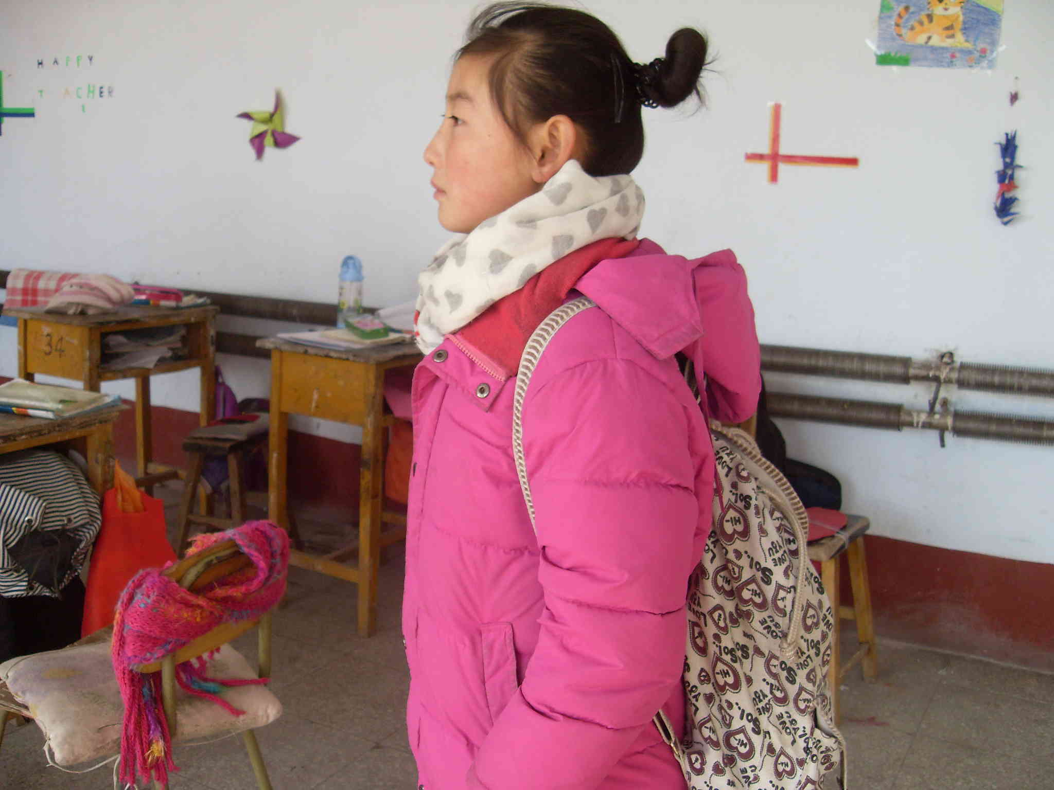 我有一个漂亮的小书包,我给它起了一个名字叫做"爱心天使"。