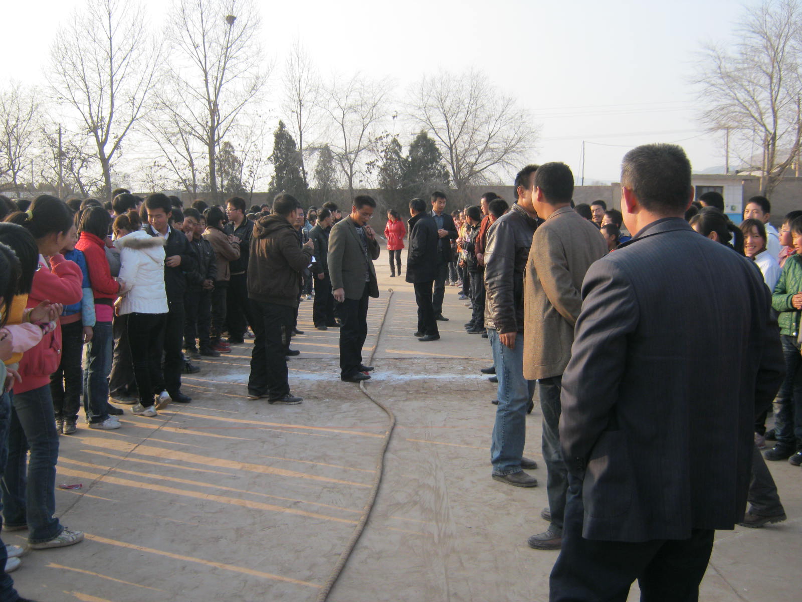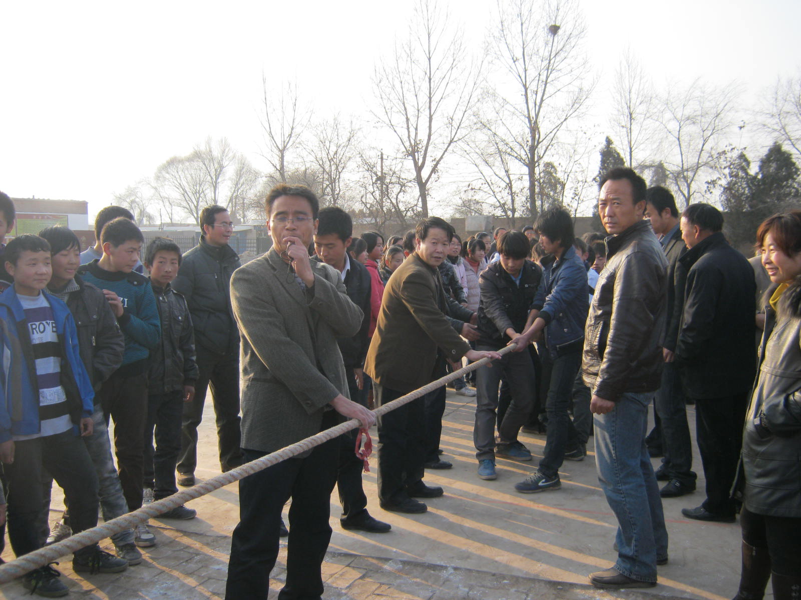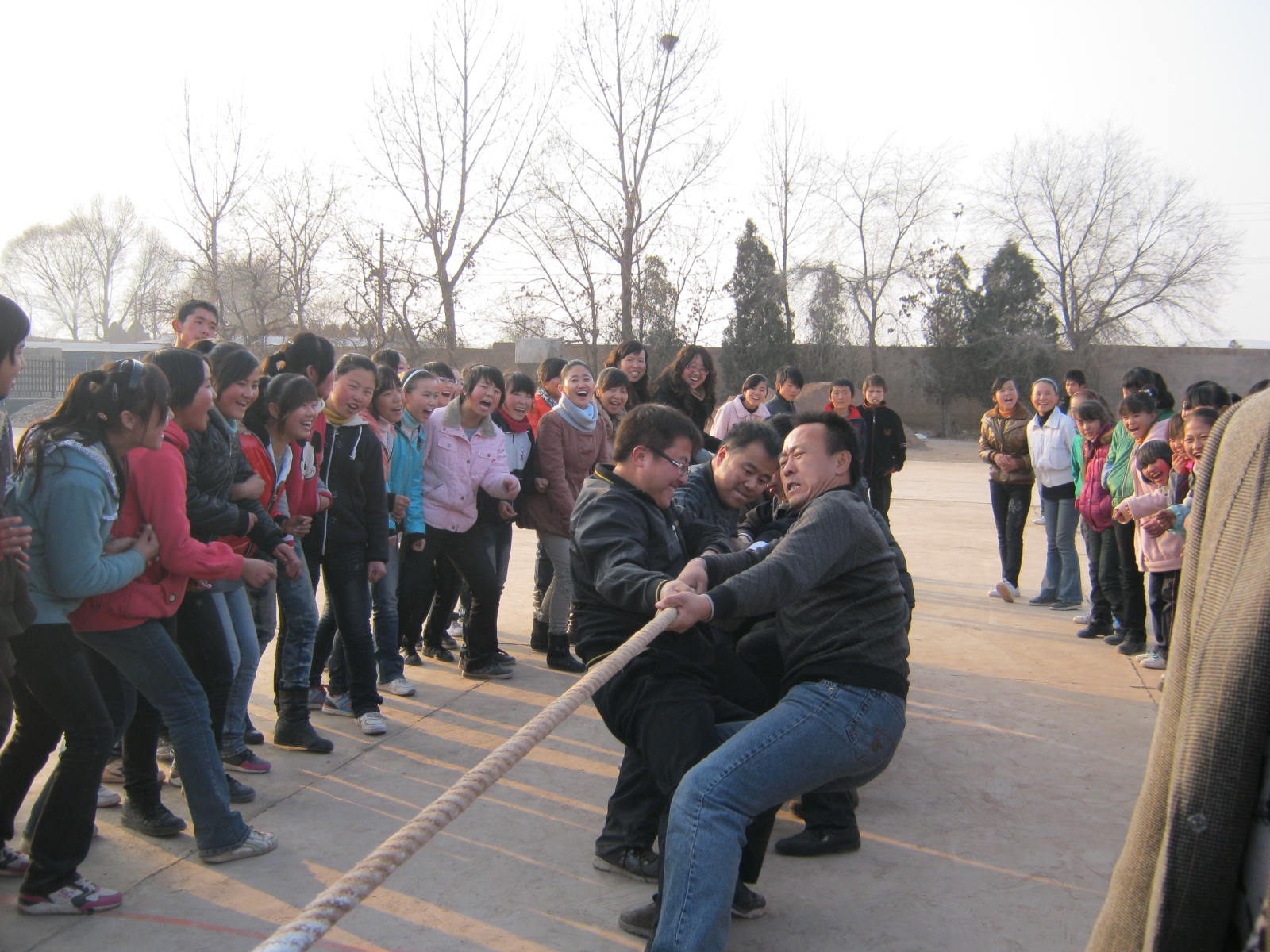 学校今天要进行我校每年一届的拔河比赛了,在这样寒冷的冬天里拔河,既可以活动身体,又可以丰富我们的课余生活。