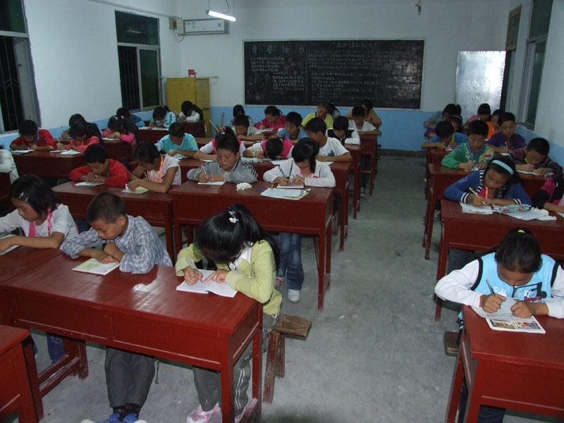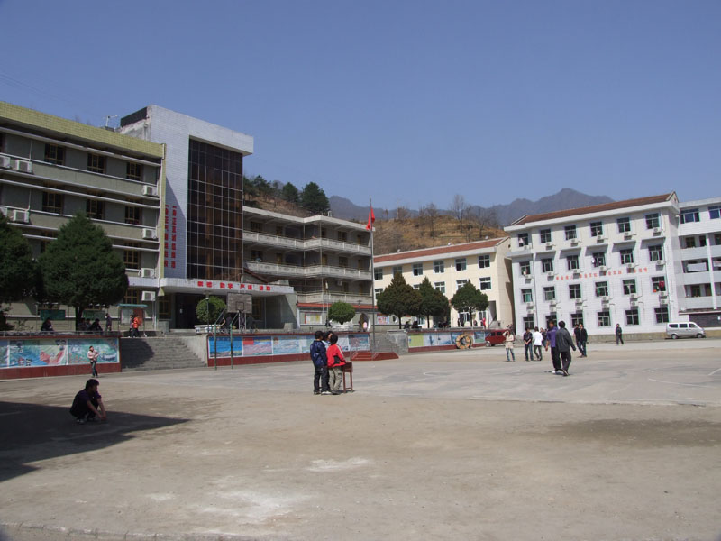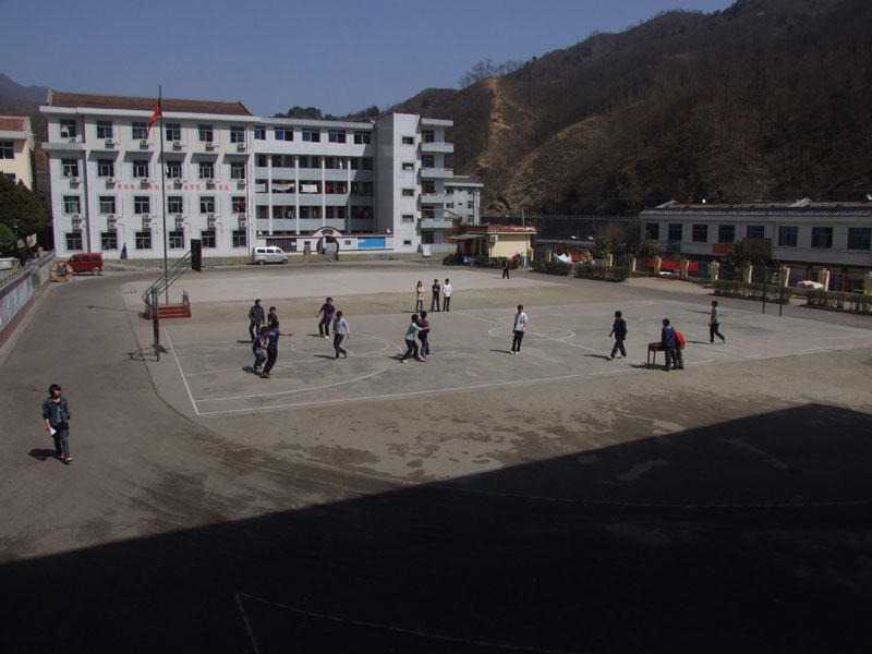 最右边则是教学楼了,教学楼分为五层,最下面一层是校领导的办公室,中间两层是教室,每间教室面积约60平方米,每层有四个教室及一个办公室,最上面一层是微机室以及一些器材室。