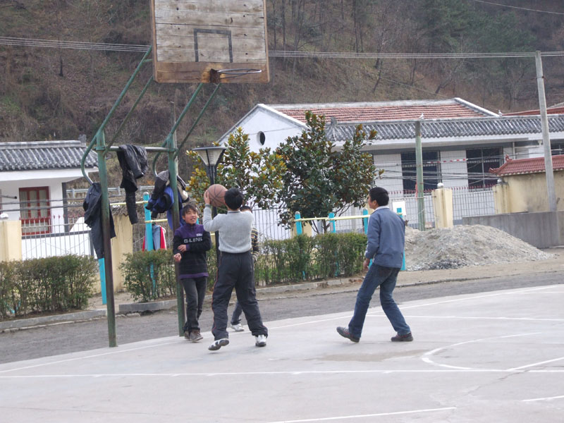 学校总面积约10000平方米,在中央是操场,操场中间是两个篮球场地,在两端设立着4个乒乓球台,最外侧是跑道,在跑道外面,有两花带,里面种着一些绿化树,场地虽小,却是校园里体育爱好者的游乐天堂,在阳光灿烂的日子里,总能看见"灌篮高手"和"国球杀手"们展现球技的身影。