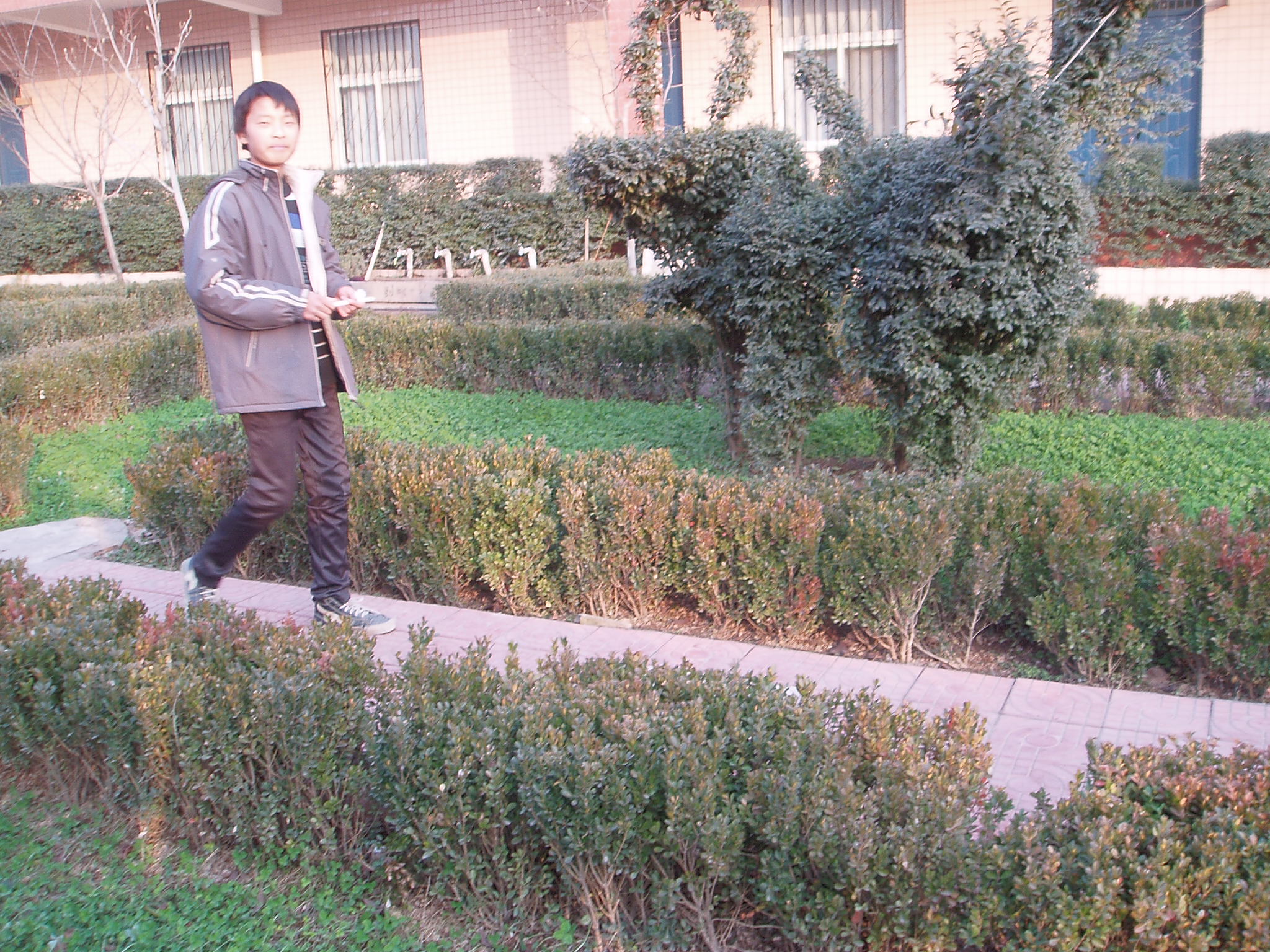 走过这个建筑物后,接下来便是我们学习的地方——主教学楼。在教学楼上共有26个教室,每个教室都有着强大的硬件设施。1、2楼为九年级的教室;3楼为八年级的教室;4、5楼为七年级的教室。除了主教学楼,能供我们学习的地方还有实验楼,实验楼上有理、化、生三科的实验室,,还有图书馆、计算机房、体育室等等-----当我们学习累了的时候我们就会到实验楼前和办公楼、教师公寓楼后面的花园去散散心。花园里种着漂亮的花草,还有经园工修剪过的小树。剪的各种各样有大象、孔雀等等,真是我们休闲的好地方。走过了主教学楼后,就来到了我们学生公寓楼和我们的食堂。我们宿舍的环境虽说不是太好,但是依然有很多的学子住在这里求学,从宿舍的楼道往西走有一个门穿过那个门就来到了我们的食堂。食堂的环境很好,卫生也很好,而且价格也便宜。是我们放学后主要消费的地方,在这里不知留下了我们多少的足迹和欢声笑语。