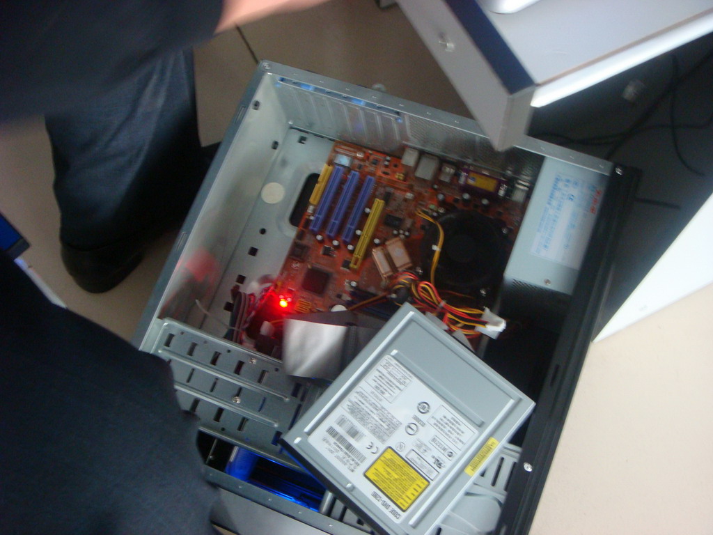 因为我们学校的学生机都是没有光驱的,因此,老师每次重新做系统的时候,要把机箱打开,拿备用光驱来连接到需要做系统的机子上,放上系统盘,才能一步步的做好系统,并安装上我们需要使用的软件。小小机箱原来这么复杂。