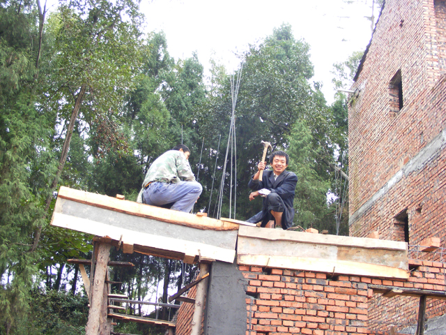 一路上我们有说有笑。在走了近30分钟的时候,我们看见马路旁有一户人家在修房子。那里有个建筑工人可能认识袁老师吧,他见袁老师带着相机,便说:"来,给我也来一张!"咔嚓!"就在这时,袁老师不等他准备好,便用相机对着他按下了快门……接着我们继续前行,过了一会儿,我们经过了一个很热闹的地方,这里像是一个小集市,什么都有得卖。我们在那里准备了我们中午的午饭——每人一桶方便面。然后就一直走到了大木山了。