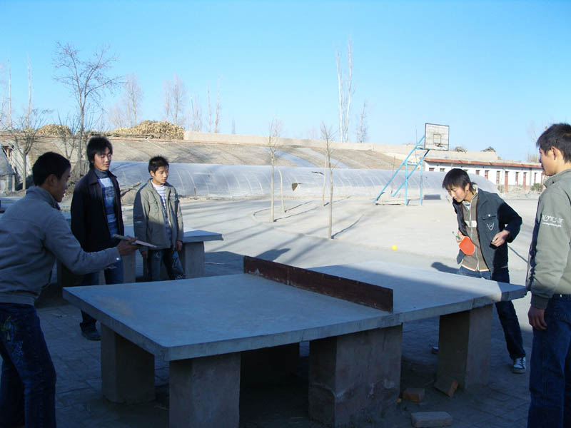 这边是打乒乓球的同学,乒乓球可是我最喜欢的运动,看他们专注认真的样子,一定是一位"乒坛巨匠"。