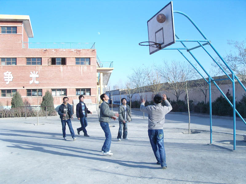 热身完毕,同学们各自开始了活动。看,这边是打篮球的同学,看他们生龙活虎的,虽然打的满身是汗,但对篮球还是一"网"情深。