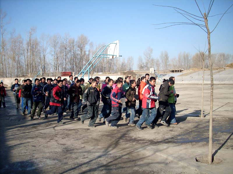 哈哈,又是一节体育课,看,同学们排着整整齐齐的队伍,精神百倍,开始了新一轮的热身训练——跑步。