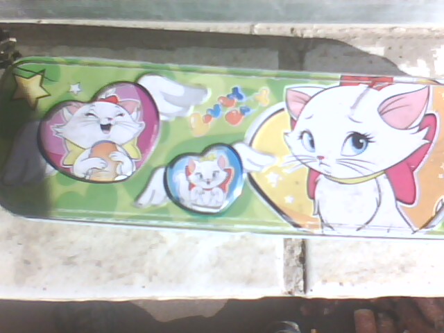 我有一个漂亮的文具盒,他的外面有一只可爱的小猫正股着嘴看着你呢,好像在跟你撒娇。又好像是捧腹大笑。