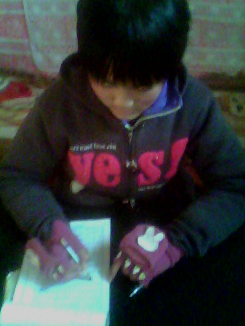 这双手套可以两用。一是写字的时候,只盖住手背,手指头露出来,那样手就不太会冷了。二是提东西时,把手全盖住。自从有了这双手套后,每一次写字我都会戴着它,渐渐地,我的手伤也好了许多。
