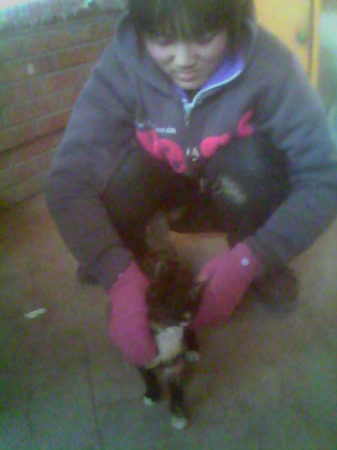 在家里和小猫玩时,我也会戴着手套,一是怕小猫抓我的手,二是天气冷。