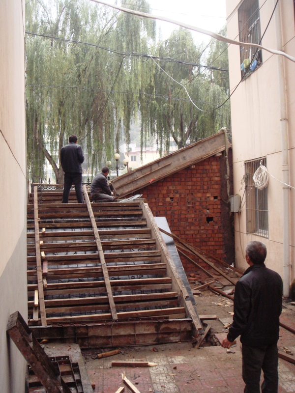 这是正在修建的女生厕所楼梯,因为地面太小,只好设计成二层结构的了。