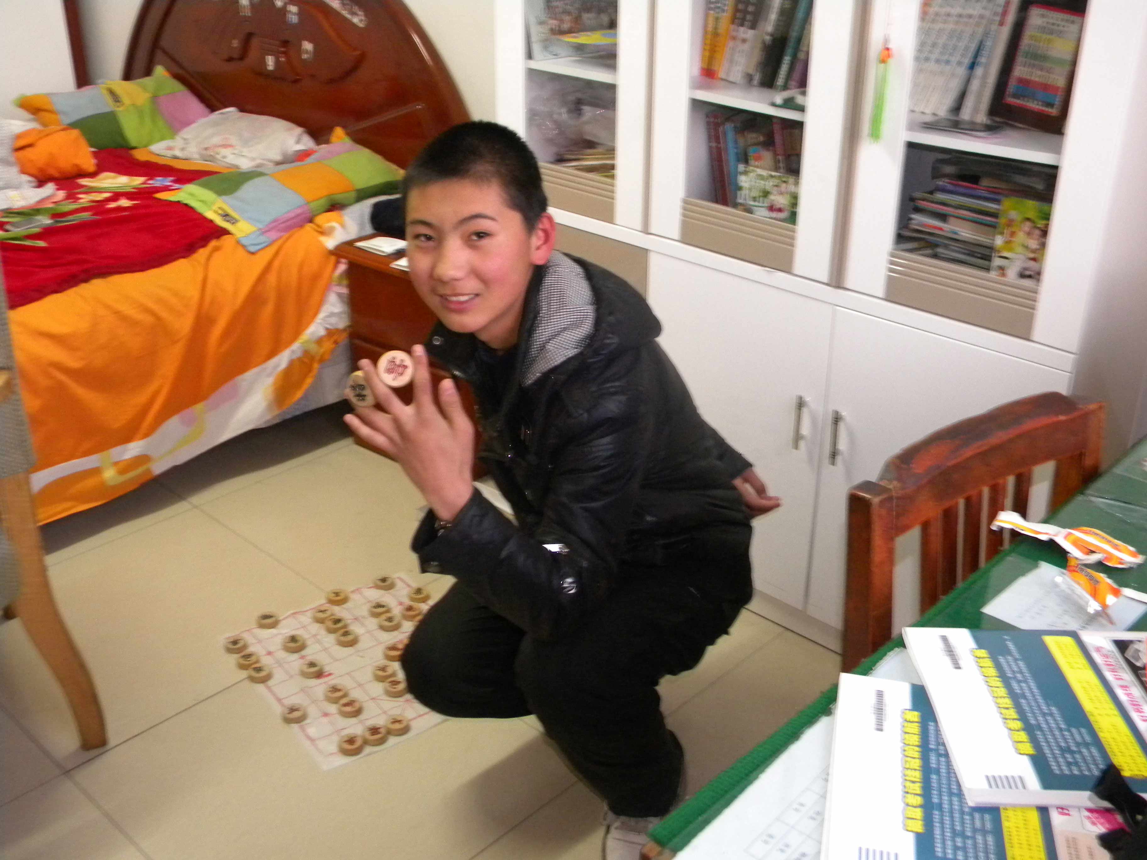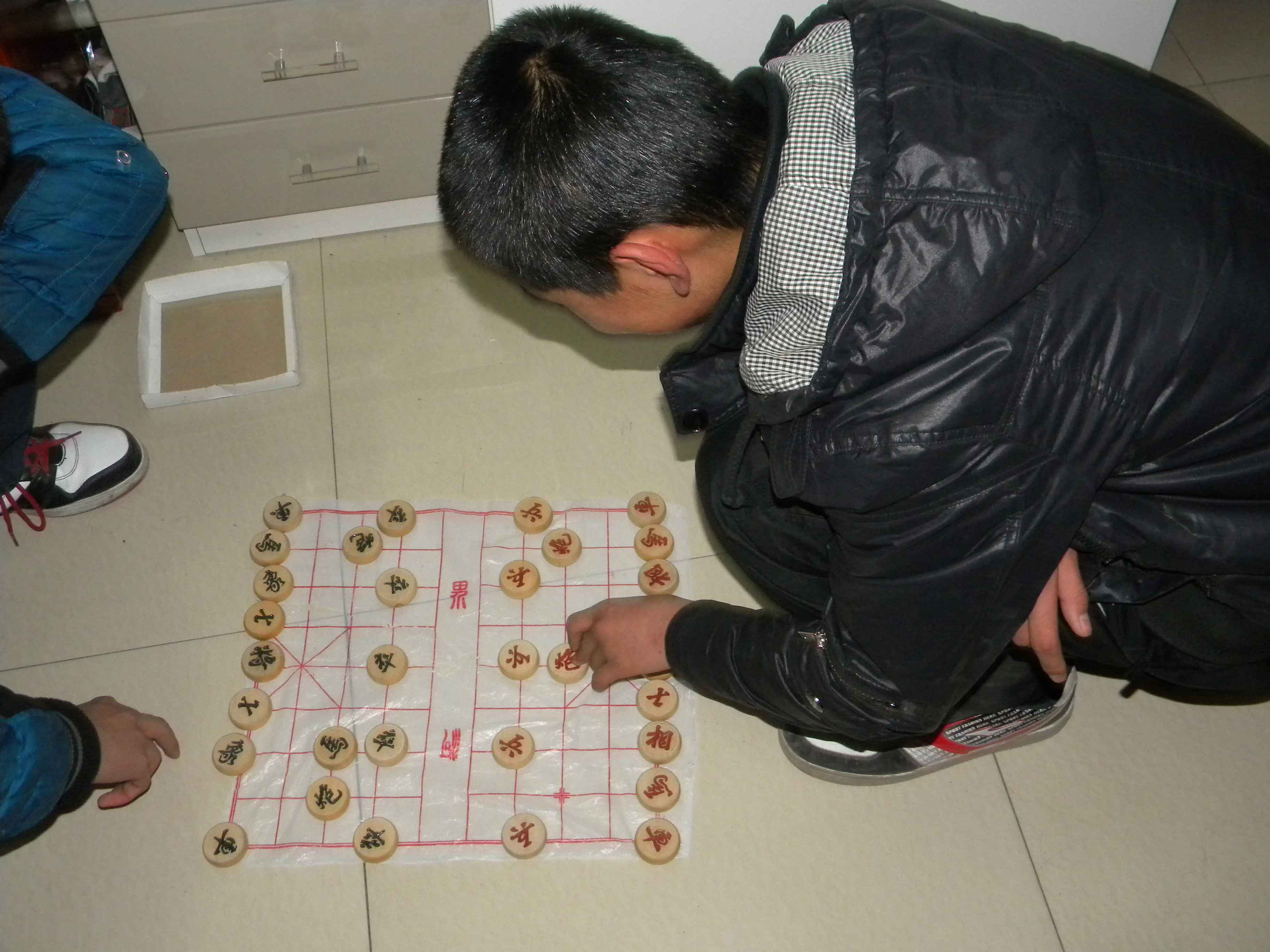 闲来没事,电视这两天又没信号 ,眼帘间突然映入了象棋,正好与爷爷下上两盘,消遣时光,顺便再学两招爷爷的招。喊来爷爷,摆上棋盘,当即就成了坐镇军队的将军,只见士卒们个个摩拳擦掌,准备着一场无与伦比的大厮杀。