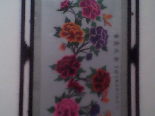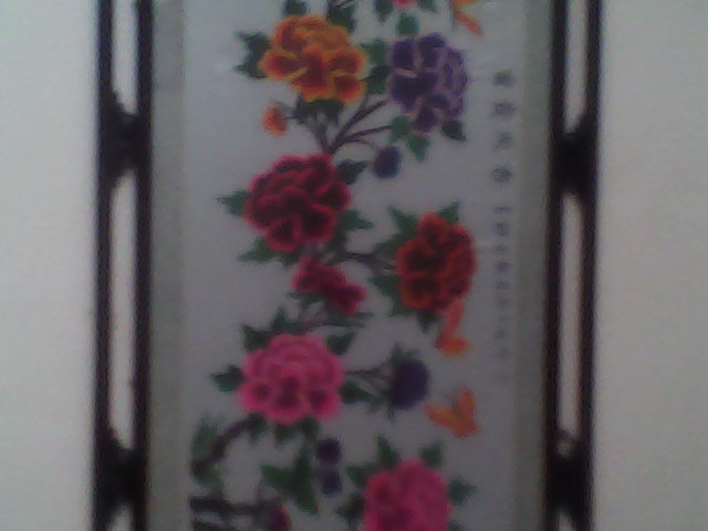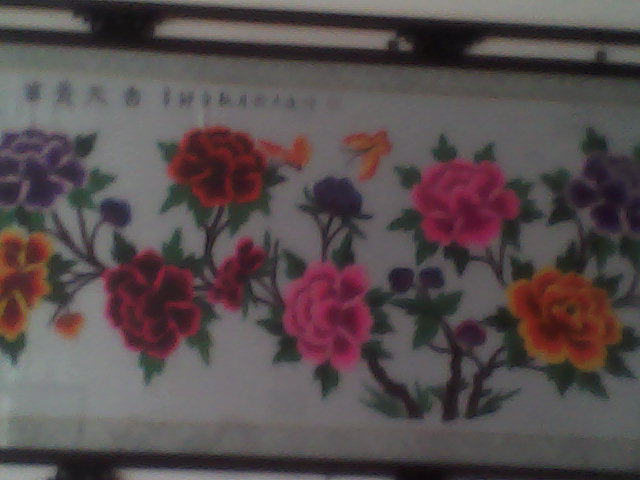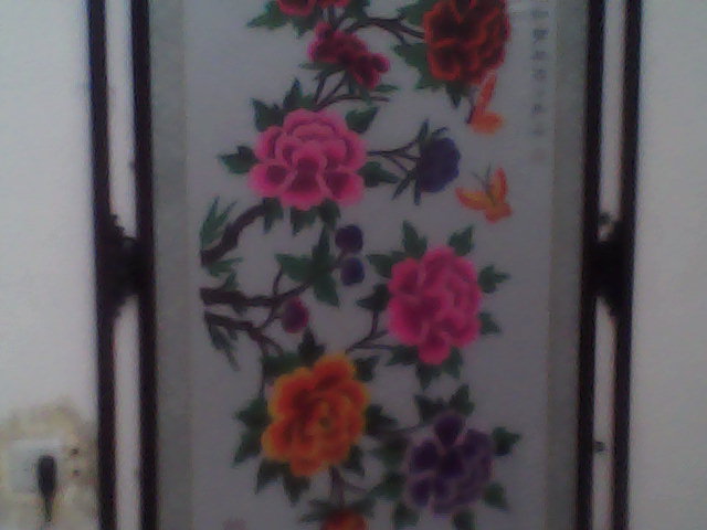 过了一星期左右,他们搬来了一个宽大概一米八九左右,长右能为二米半吧,一进来就先立在了墙根边上,那个美啊!奶奶和妈妈她们搬不动,也怕打碎装的玻璃,所以没动,一直就那放着,等到我爸和爷爷来了,他们就把十字绣挂在了墙上。一进门就特有吸引力,在牡丹上面绣着"富贵天香"四个大字,没错,古人云:"牡丹,花之富贵者也!"这就是奶奶的一大杰作!