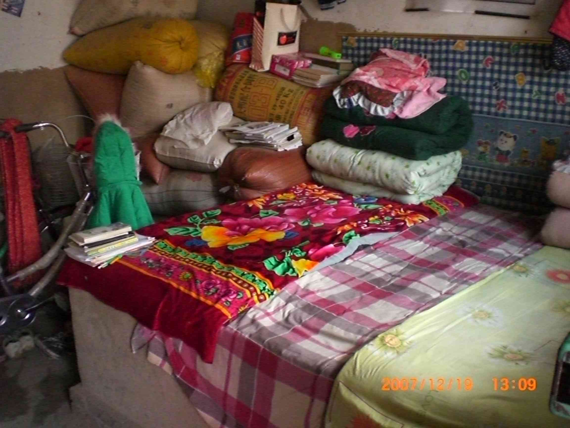 宿舍全部在学校外面,每个需要住宿的学生都必须自己在外面找房子,一间房子最大的只有10到20米,要住七八个同学,里面只有一米多宽的走道,有的虽然住的三四个同学,但房主却还要在里面堆放自己的杂物。如果进去看一下,房间里最起眼的就只是一排整齐床铺上摆放的书和食品袋。这还算是好点的,有的宿舍连个放东西的地方都没有。