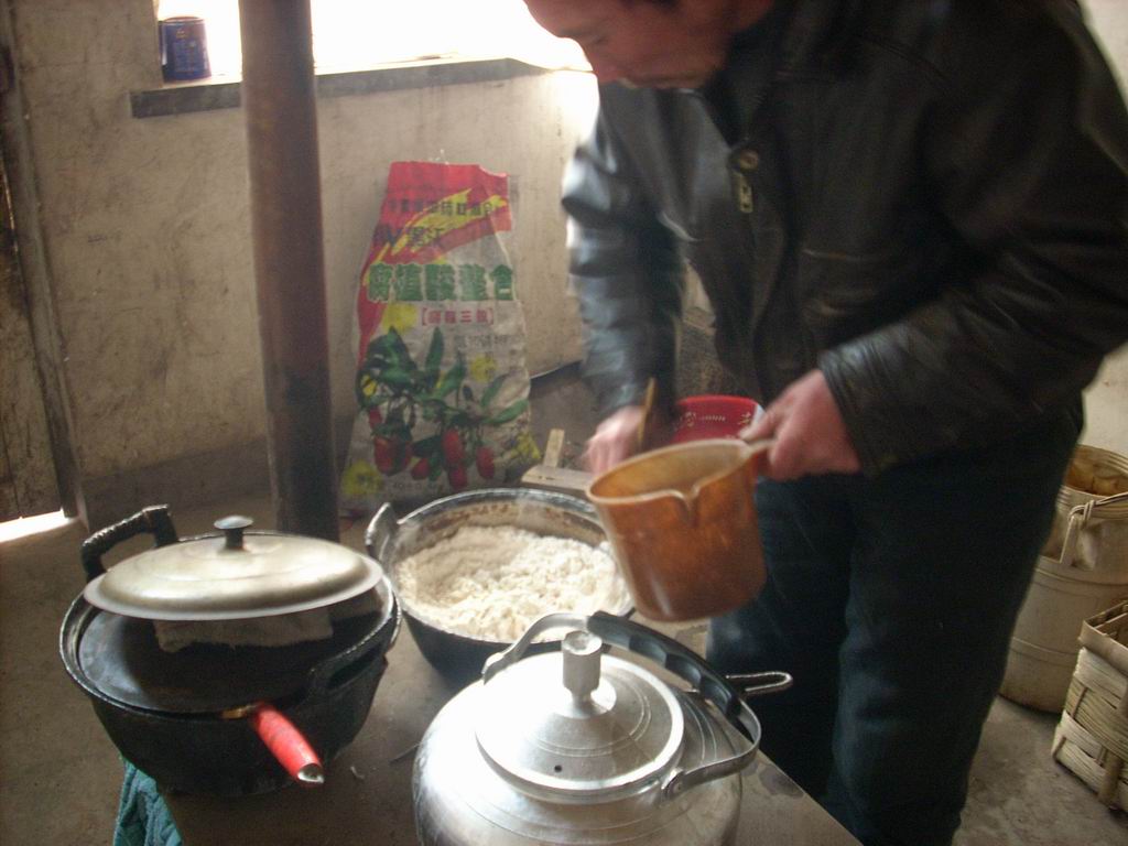 每当周六回到家爸爸都会亲自露一手,给我做最拿手的手擀面。瞧,爸爸要和面了,在和面前常常要倒一些盐,因为这样面的弹性会更好一点,吃起来味道会更好。