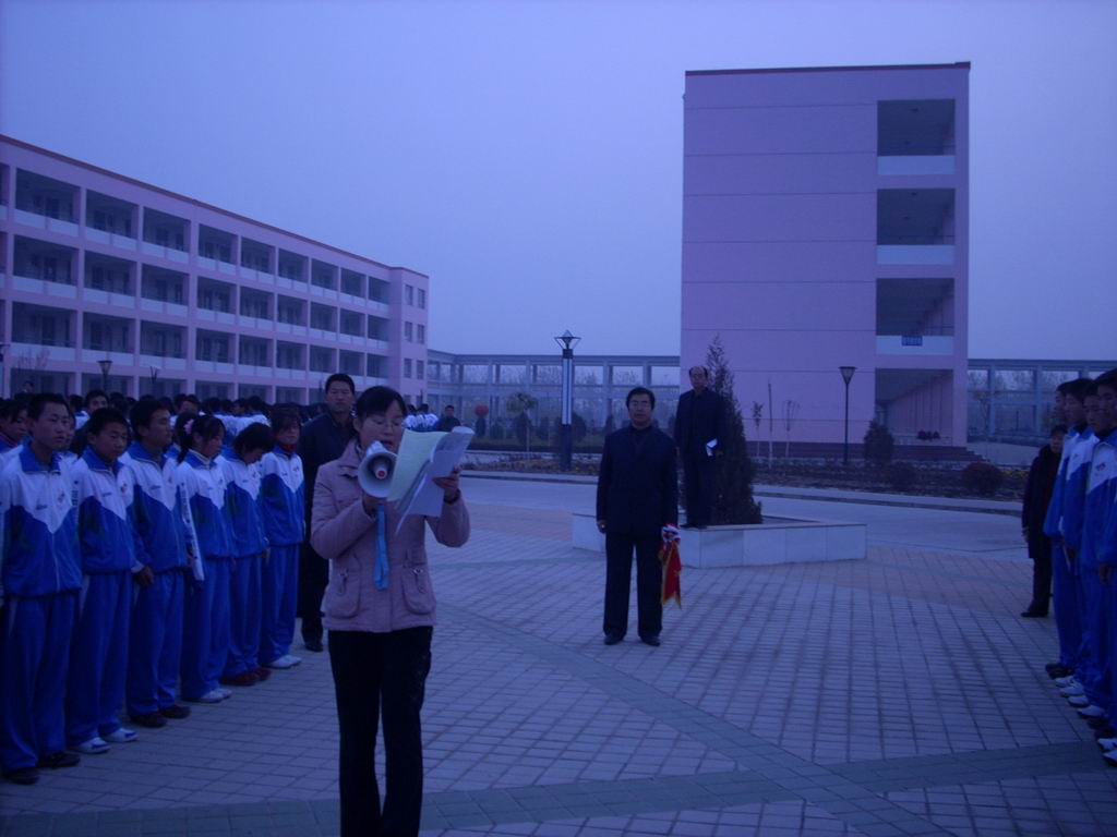 今天是星期一,按照惯例我们要开集会,集会的内容是总结上一周各班的学习生活,还要按照各班的得分情况排名次,当然每位同学都希望自己的班级可以得上流动红旗,我们的学校追求的可是半军事化的管理,所以,看,我们站的整齐吧!
