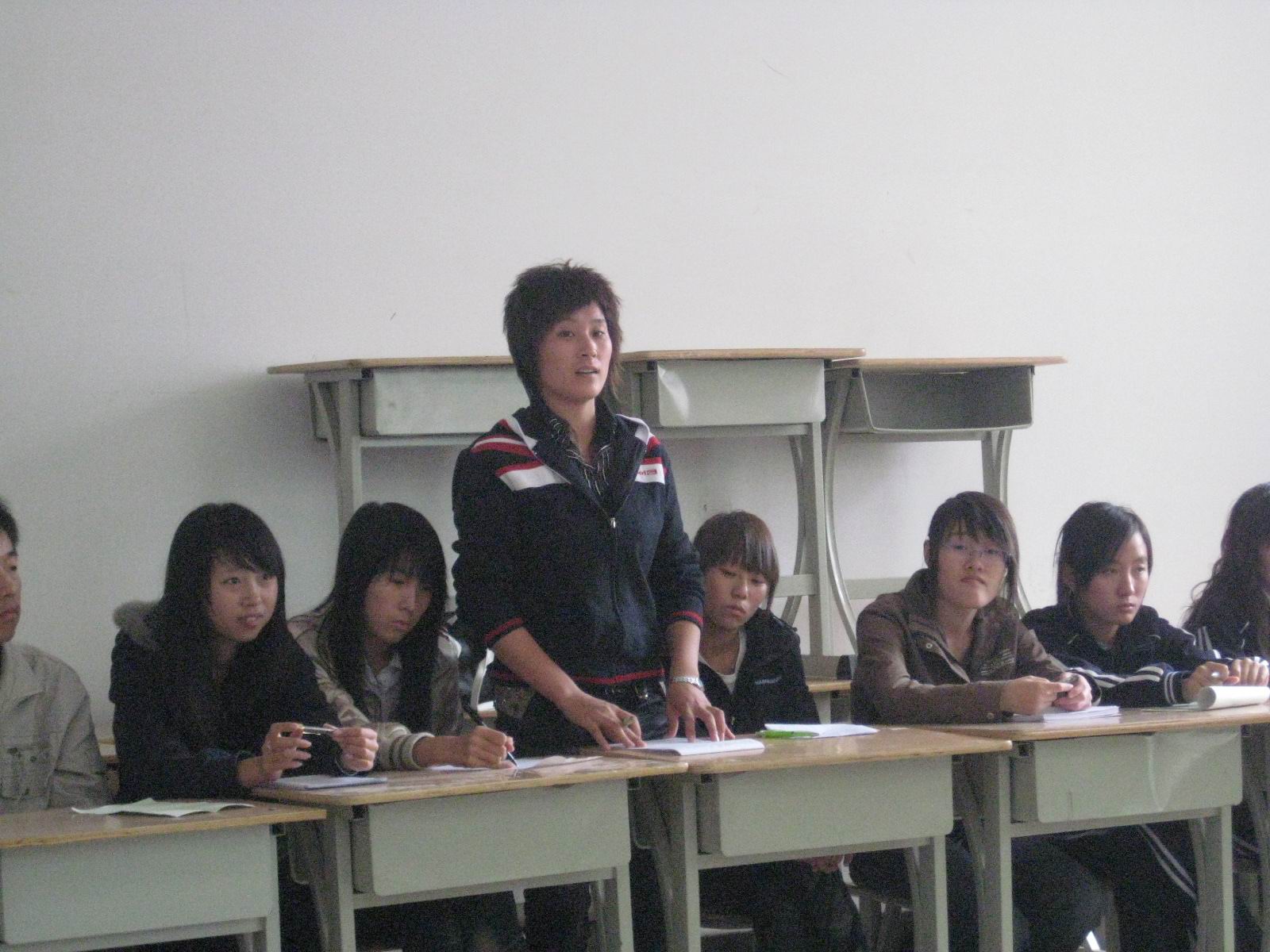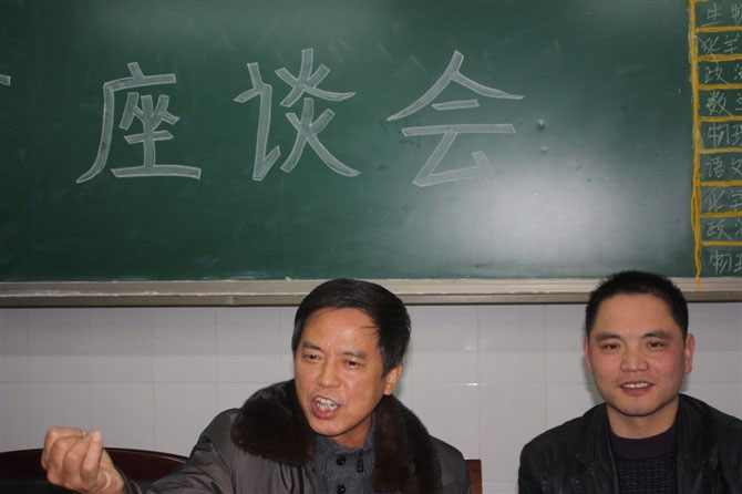 老师给我们将他们的经历一一的讲给我们。 看老师笑得多么的开心,同学也笑得那么的灿烂,同时我们也派了代表来讲出了我们的心声。