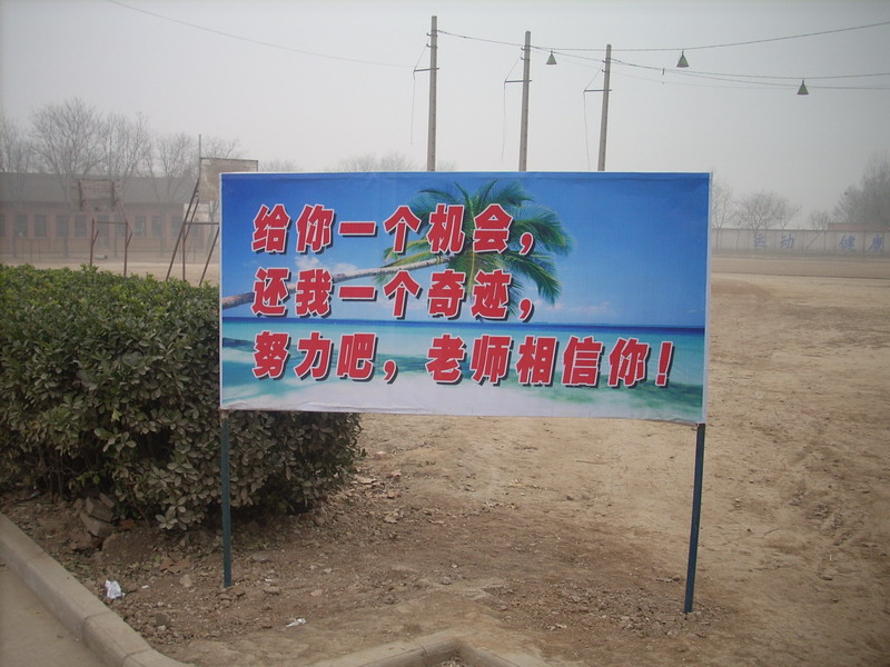 学校里有很多的标语牌,上面有不同的内容,这些内容都有着特定的含义,对我们中学生都有很大的启发作用,寓意深刻。例如,刚进我们的校门口,迎面就看到那样一个标语 ,一下子使我们的信心倍增。